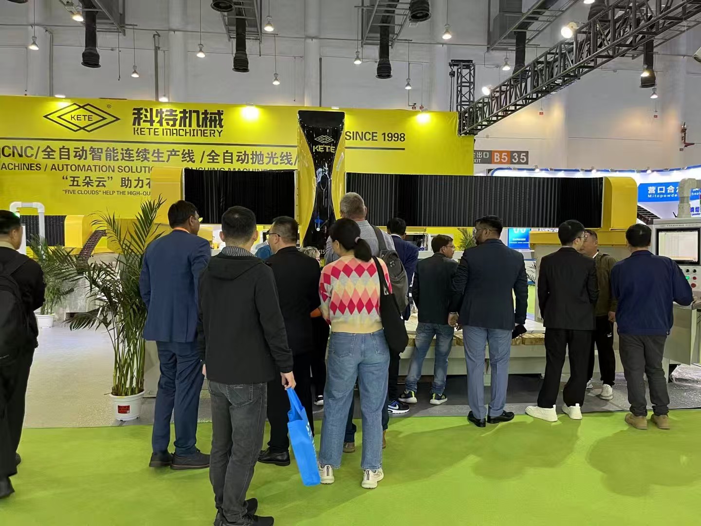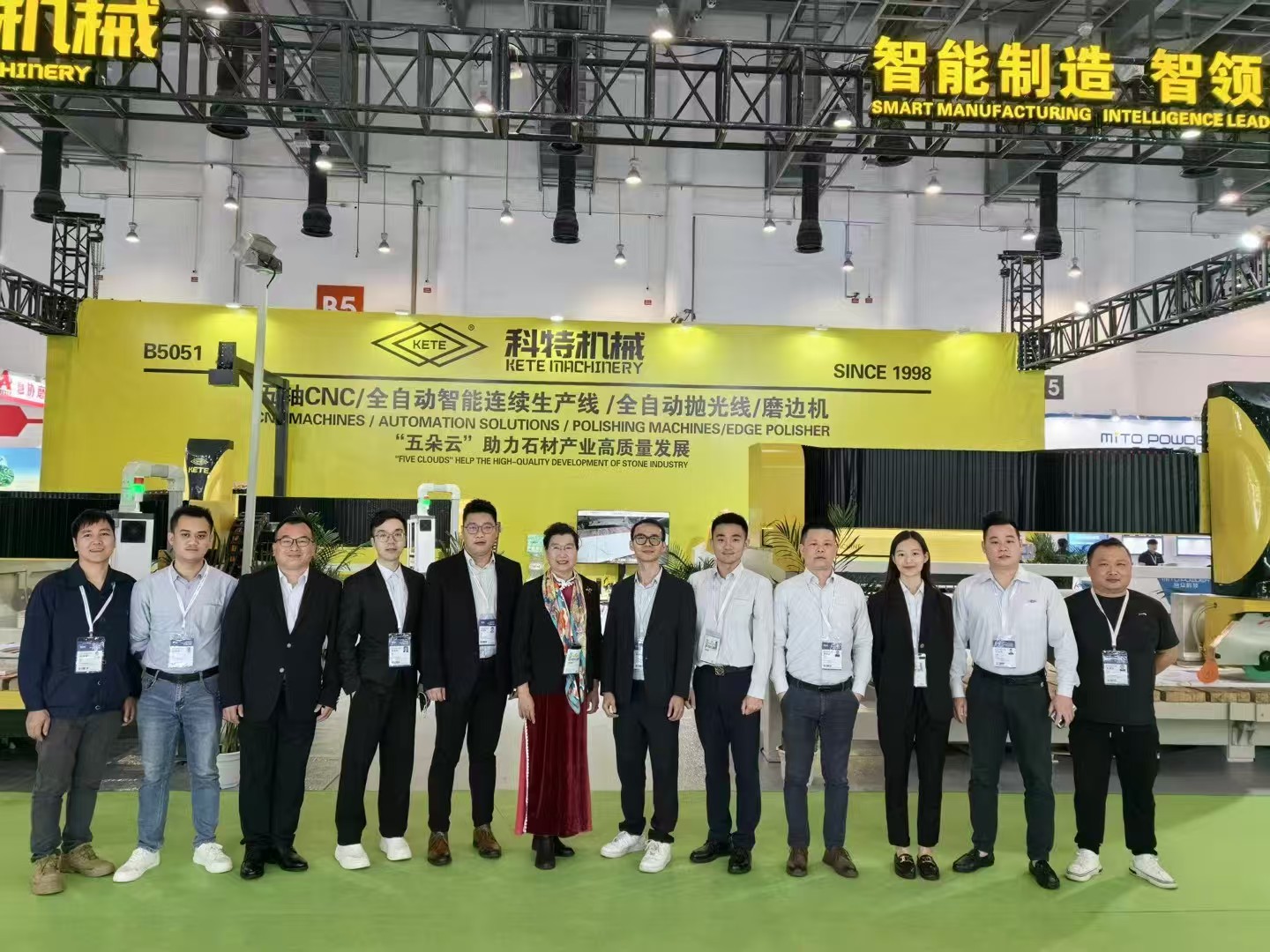 As a company dedicated to providing complete solutions for stone processing, Yunfu KETE Machinery Co., Ltd. began preparing for this major industry event well in advance. At Booth B5051, KETE Machinery presented a series of cutting-edge products and solutions, including the newly launched 5-axis CNC four-linkage machine, an optimized and upgraded 5-axis CNC system, the industry-first 3P integrated equipment solution, and a multi-functional edge polishing production line that breaks away from traditional vertical polishing methods.